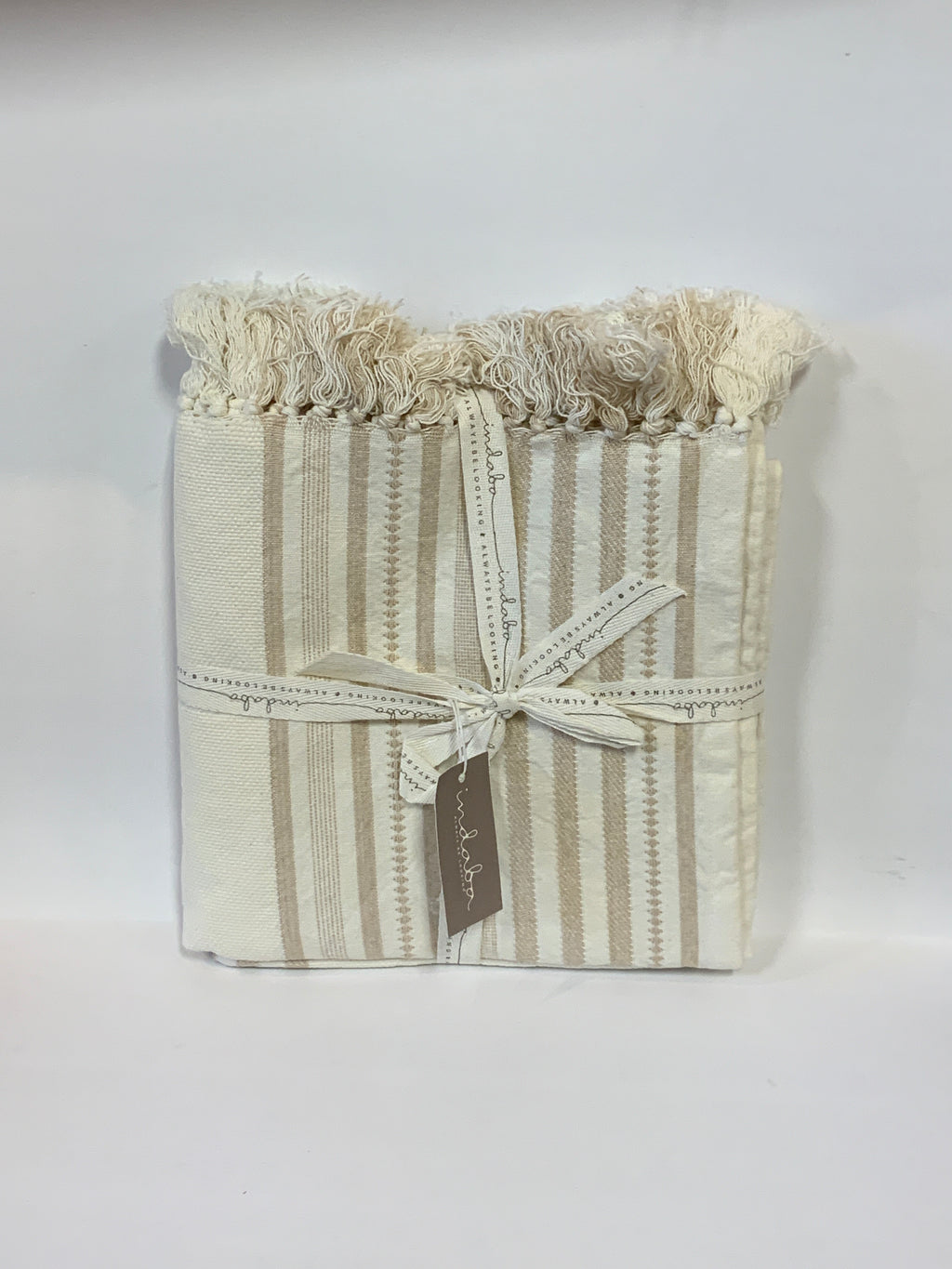 Cream and Taupe Cotton Tasselled Throw