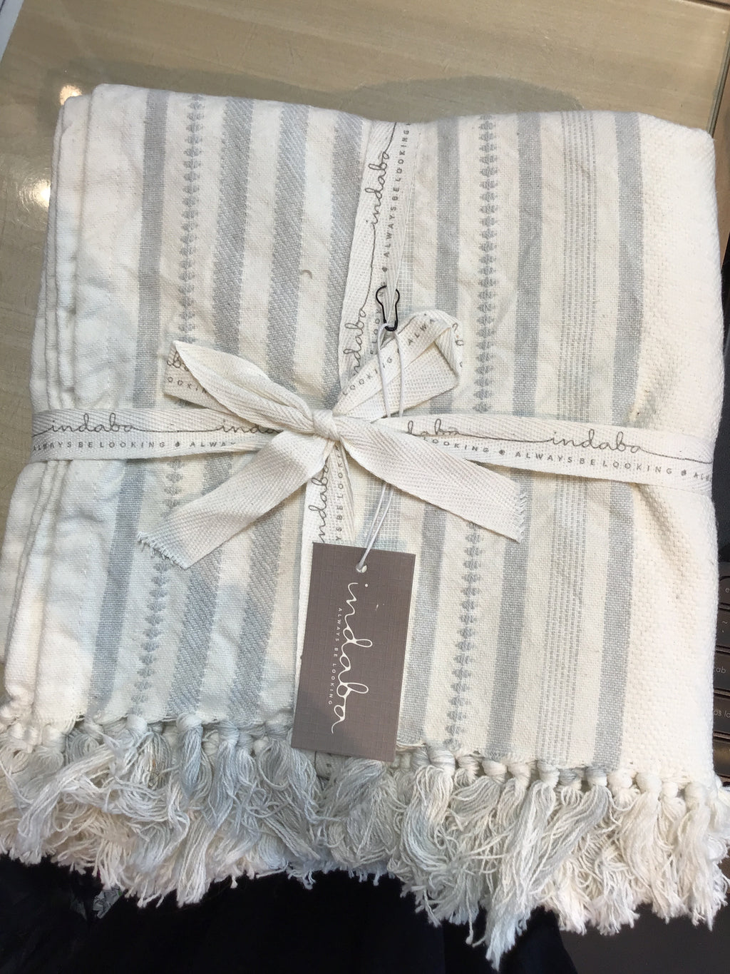 Cream and Blue Indaba Tassel Throw